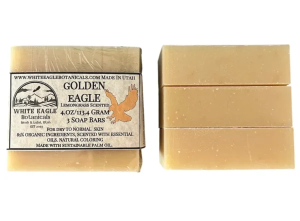 Be the first to review “Golden Eagle Organic Soap 3 4.oz Bars, Lemongrass scented, natural coloring no dyes,”