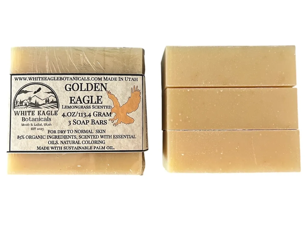 Golden Eagle Organic Soap 3 4.oz Bars, Lemongrass scented, natural coloring no dyes,