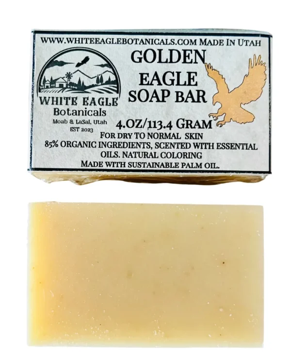 Be the first to review “Golden Eagle Organic Soap 4.oz Bar, essential oil Lemongrass scented, natural coloring no dyes,”